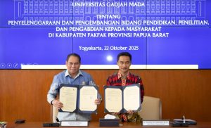 Yogyakarta — Dalam upaya memperkuat pembangunan sumber daya manusia (SDM) yang berkualitas dan berdaya saing, Pemerintah Kabupaten Fakfak, Provinsi Papua Barat, menjalin kerja sama strategis dengan Universitas Gadjah Mada (UGM). Penandatanganan Nota Kesepahaman (MoU) antara kedua pihak dilaksanakan di Auditorium Lantai II UGM, Yogyakarta. Kolaborasi ini menjadi langkah konkret Pemerintah Kabupaten Fakfak dalam menyiapkan SDM unggul yang siap menghadapi tantangan pembangunan daerah di masa depan, Rabu (22/10/2025).