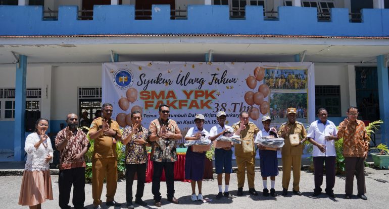 Fakfak, 20 Oktober 2025 — Pemerintah Kabupaten Fakfak melalui Dinas Pendidikan kembali menunjukkan perhatian terhadap dunia pendidikan dengan menyerahkan bantuan seragam sekolah gratis kepada para peserta didik SMK YPK Fakfak. Penyerahan tersebut berlangsung di halaman sekolah dalam rangka perayaan Hari Ulang Tahun (HUT) ke-38 SMK YPK Fakfak.