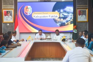 Fakfak, 15 Oktober 2025 – Bupati Fakfak, Samaun Dahlan, S.Sos., M.AP., menyambut kepulangan tim karate Kabupaten Fakfak yang telah berpartisipasi dalam kejuaraan karate tingkat regional dalam rangka Hari Ulang Tahun Kabupaten Mimika di Timika, Papua Tengah. Penyambutan berlangsung di ruang rapat Kantor Bupati Fakfak dan turut dihadiri Sekretaris Daerah, staf khusus, pelatih, pengurus cabang olahraga karate, serta para atlet.